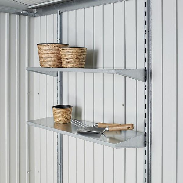 La nostra casetta è dotata di una ricca dotazione di base, che include 2 portautensili e 4 ganci porta attrezzi per un’organizzazione ottimale degli attrezzi, oltre a 2 ripiani e supporti per ripiani per massimizzare lo spazio di stoccaggio. Inoltre, la pratica apertura della porta con pistone a gas garantisce un’accessibilità comoda e senza sforzi, rendendo ogni operazione più semplice e funzionale.