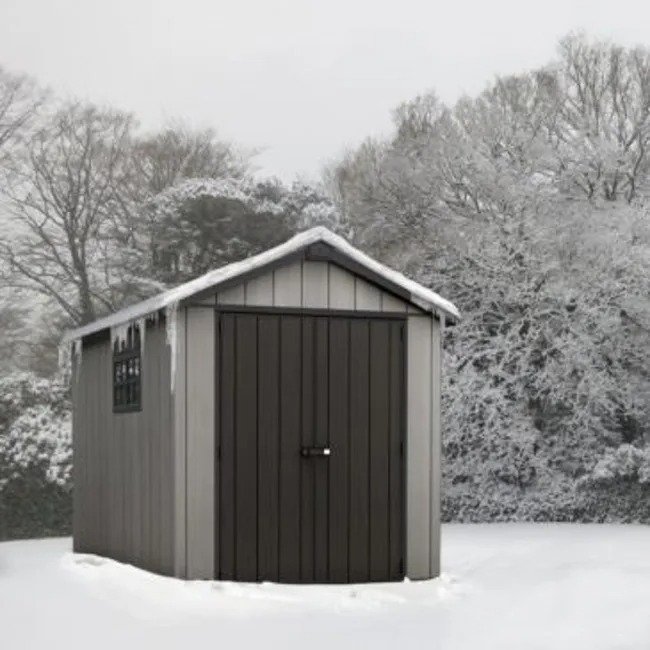 Ampia apertura, la doppia porta e il soffitto sufficientemente alto permettono di riporre anche attrezzi di grandi dimensioni – Facile da assemblare grazie ai pannelli pretagliati – Durevole e resistente agli agenti atmosferici, i rinforzi metallici rendono la casetta durevole nel tempo, garantendo stabilità e resistenza ai carichi di neve fino a 150 Kg/m², senza necessità di manutenzione – Il pavimento rialzato mantiene il contenuto asciutto e pulito ed è ideale anche per sopportare anche carichi pesanti – La finestra e il lucernario forniscono allo spazio interno un’illuminazione naturale, ideale per riporre le piante nel periodo invernale – Realizzata con innovativi pannelli in DUOTECH, dotati di particolari finitura che riproduce gli effetti del legno spazzolato.