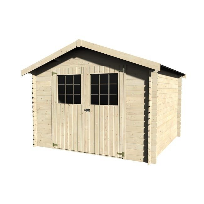 Casetta in legno di abete del nord dalle misure esterne 298×298 cm dotata di porta anta doppia con vetro sintetico, pavimento non incluso ma acquistabile come optional. Sistema di montaggio a vite con pannelli spessore 28 mm. Completa di tetto in legno ESB con finitura bituminosa da 1.5 mm Ideale per il giardino, mai più attrezzi sotto le intemperie. Pratica porta singola a vetro sintetico trasparente dotata di maniglia, serratura e montata su cardini in metallo. Caratteristiche Tecniche: